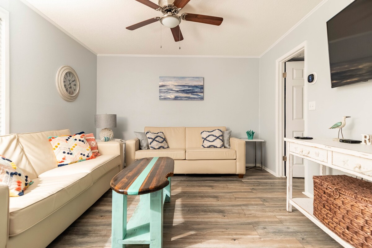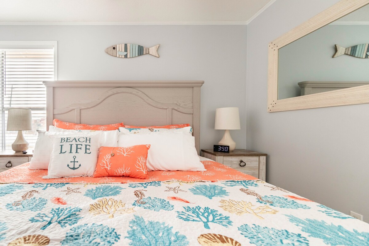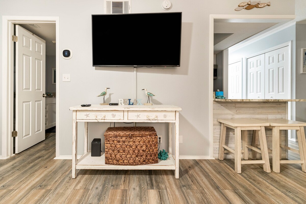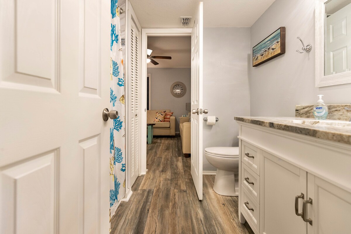 DestinThis updated, adorable condo is the perfect place for a relaxing vacation. Sit out on the spacious balcony overlooking one of the 9 Par-3 golf holes while drinking your morning coffee and breathing in the fresh salt air. Cook up your catch of the day in the fully equipped kitchen, then relax in the spacious living room and enjoy a movie with the family on the 55” Roku tv before a restful night on the king-sized Nectar memory foam mattress.